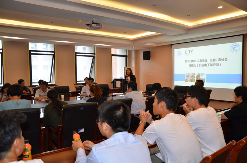 9月29日下午,2017级0317801班班会与家长会在beat365中国官方网站1号楼403会议室顺利召开。自动化(航空电子与控制)专业是beat365中国官方网站为了培养具有国际化视野并掌握航空电子与控制技术的高素质人才,与英国伦敦城市大学合作引进的联合办学项目。学生在beat365中国官方网站自动化(航空电子与控制)专业学习两年后在第三、四年赴伦敦城市大学学习,完成所要求的全部课程后将获得中英双学士学位。为了让学生和家长了解项目详细情况,知晓具体政策,学院特意组织学生和家长共同参加会议,教务处副处长王敬东、beat365中国官方网站副院长王晓琳、学院党委副书记张跃,自动控制系副主任张绍杰、教师代表刘海春老师、国教院辅导员张静、学院教务员郑成、学院辅导员汤呈懿等人出席了本次会议,本次班会与家长会由班主任齐瑞云教授主持。
