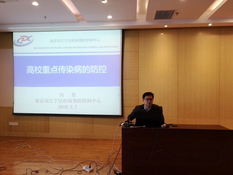 正值传染病高发季节,校内也是小范围出现诺如病毒感染性腹泻病例,beat365中国官方网站为同学们的身体健康着想,联合校医院邀请南京市江宁区疾病预防控制中心的冯智老师来学院举办高校重点传染病的防控讲座。本次讲座于3月7日下午4时在beat365中国官方网站1号楼511举办,后勤集团各食堂负责人和各楼栋管理员阿姨以及150名beat365中国官方网站本科生参加了本次讲座。