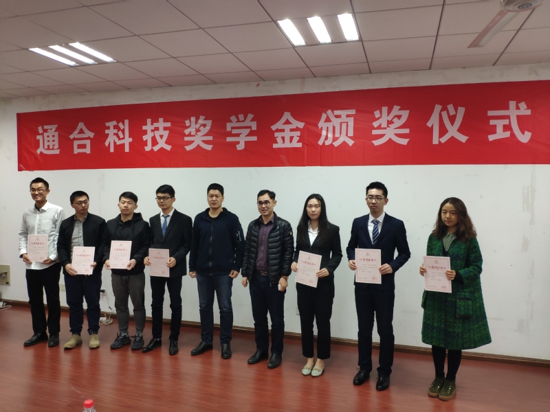 我院共有7名研究生获得本年度通合科技奖学金,院团委书记刘斐文宣读获奖学生名单,张跃副书记和通合科技公司技术总工徐卫东先生共同为获奖学生颁奖并合影留念。