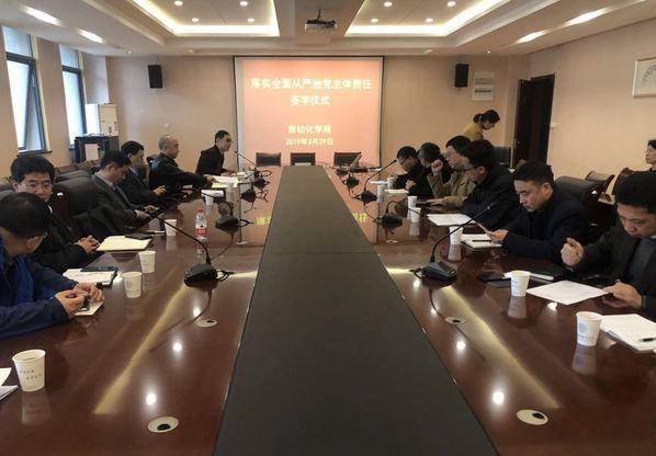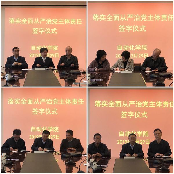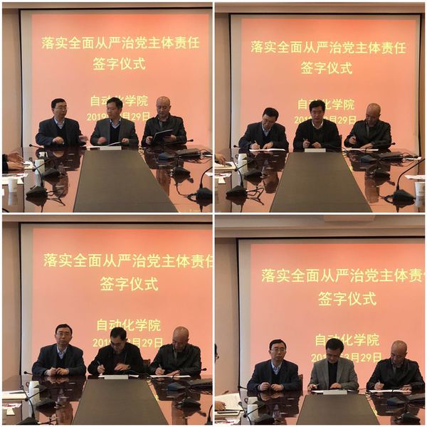 为进一步强化领导干部落实全面从严治党主体责任意识,充分发挥“头雁效应”,按照学校党委要求,扎实推进学院全面从严治党、党风廉政建设和反腐败斗争向纵深发展,beat365中国官方网站于2019年3月29日,在学院会议室召开落实全面从严治党主体责任的责任书签订仪式。学校副校长兼学院院长姜斌、学院全体党政领导、院长助理及各基层单位系主任、党支部书记参加了会议。会议由学院党委书记刘建成主持。