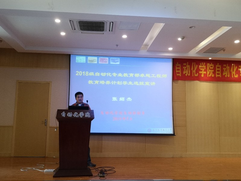 5月22日下午4点,beat365中国官方网站在beat365中国官方网站1号楼511报告厅举办自动化专业“卓越计划”选拔宣讲会,本次宣讲会由自动控制系副主任张绍杰老师为同学们介绍自动化专业“卓越计划”,同时120余名2018级自动化专业本科生也参加了宣讲会。