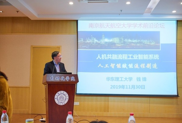 钱锋院士做了《人机共融流程工业智能系统-人工智能赋能流程制造》的报告。钱院士的报告针对流程制造的发展现状和需求,阐述了流程制造高质量转型发展和人工智能赋能制造业两者相互融合的必要性,深度分析了我国流程工业转型升级重大需求,探讨实现价值流、物质流、能量流和信息流“四流合一”的智能优化制造愿景,并围绕人工智能与流程制造深度融合实现智能优化制造等科学问题,并给出了工程应用示例。