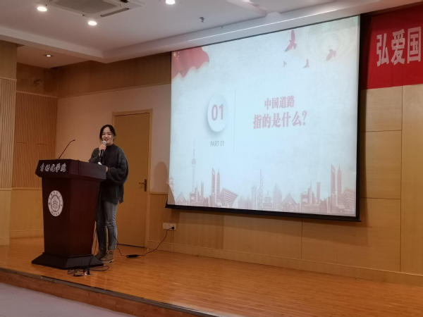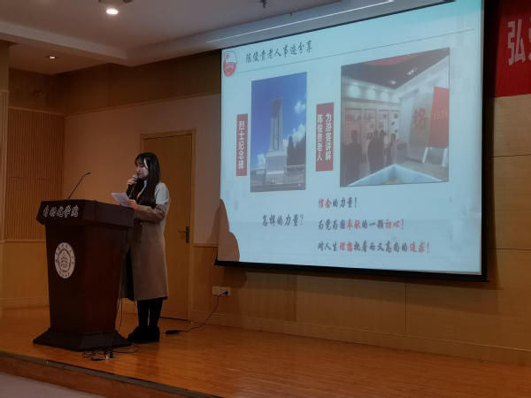 19级研究生第7团支部的李慧演讲的主题为“守望天山,守望永不褪色的初心”。她以天山公路的修建为例,讲述了陈俊贵老人“直到还有一口气就守到永远”的天山精神,启迪同学们要做有理想、有本领、有担当的时代新青年。