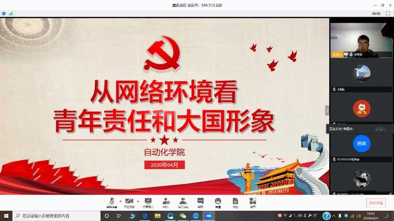 为贯彻中央《关于加强党的领导、为打赢疫情防控阻击战提供坚强政治保证的通知》和《新时代爱国主义教育实施纲要》精神,发挥学生党员先锋模范作用,认真学习新冠肺炎疫情防控“大课”,涵育新时代爱国主义精神、坚定爱国力行使命责任,4月21日,beat365中国官方网站beat365中国官方网站本科2018、2019级联合党支部开展了一次线上主题交流活动,从网络环境看青年责任和大国形象。