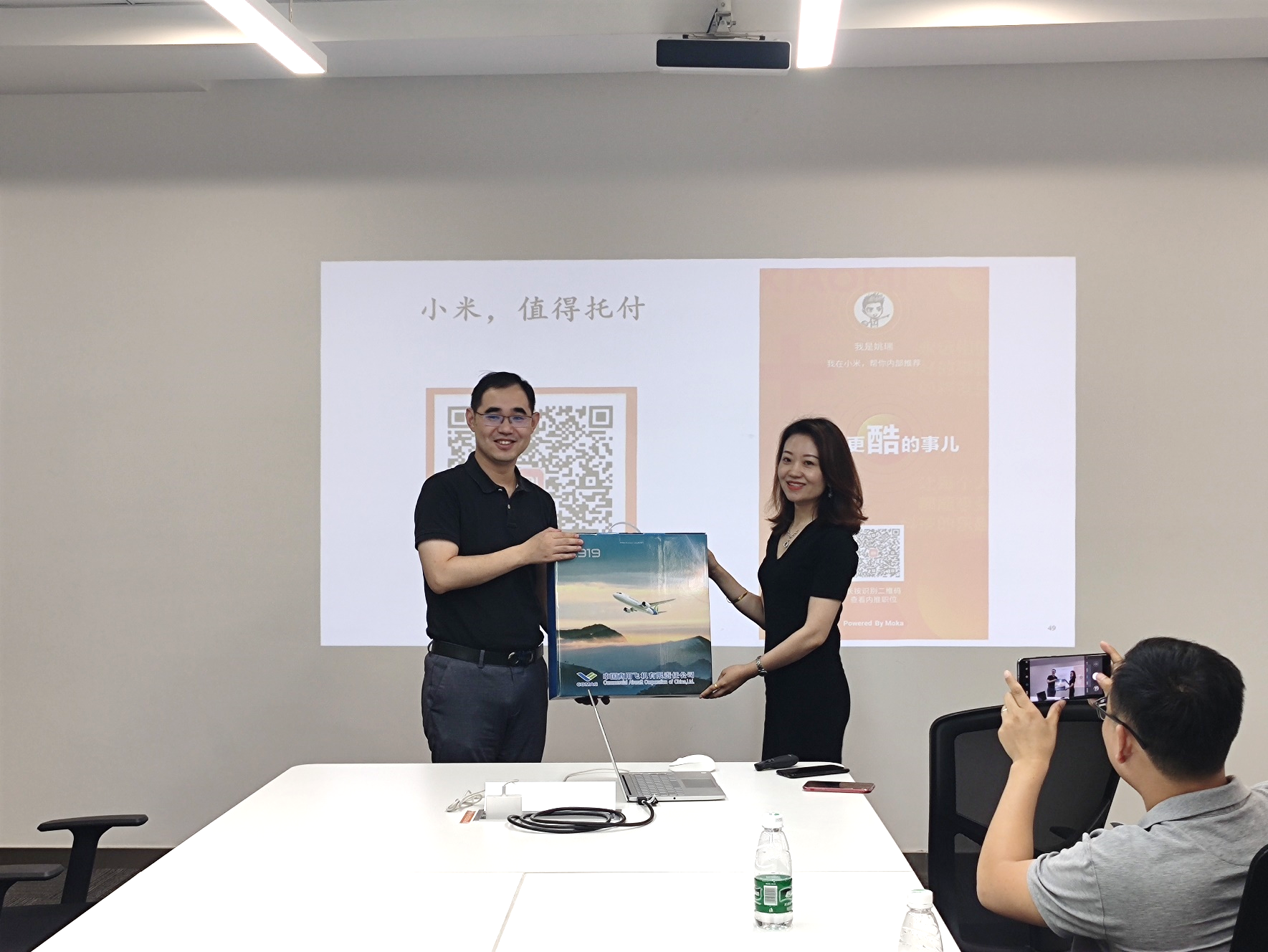 小米科技有限责任公司是一家专注于智能硬件和电子产品研发的全球化移动互联网企业。在人力资源总监张蕴等人的带领下,师生们首先参观了小米的员工办公区域包括运动设施,聊天沙发、免费饮料等。接着在会议室观看了小米公司的宣传片,人事总监张蕴介绍了小米集团的发展历程和价值观及其应届生培养计划,并欢迎南航毕业生来小米就职。最后,作为南航校友的王琪和姚瑞两位师兄,和同学们分享了他们入职以后的感受。人事总监也针对在座同学的求职疑问进行了一一解答。同学们听后都表示受益匪浅,对小米的企业文化有了更进一步的认识。活动结束之际,beat365中国官方网站党委副书记张跃书记向南京小米赠送了由南航校友参与设计的国产大飞机C919模型一台,象征着南航beat365中国官方网站与南京小米的友谊,也祝福南京小米蒸蒸日上。