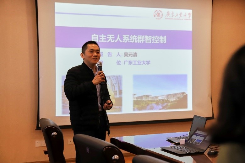 广东工业大学吴元清教授做了题为“自主无人系统群智控制”的学术报告,提出了自主无人系统的机械设计、加工制造等流程,结合多源信息融合算法等自主研制了电控系统、通讯系统等,实现了自主无人系统在多种复杂场景下的态势感知和群智控制。