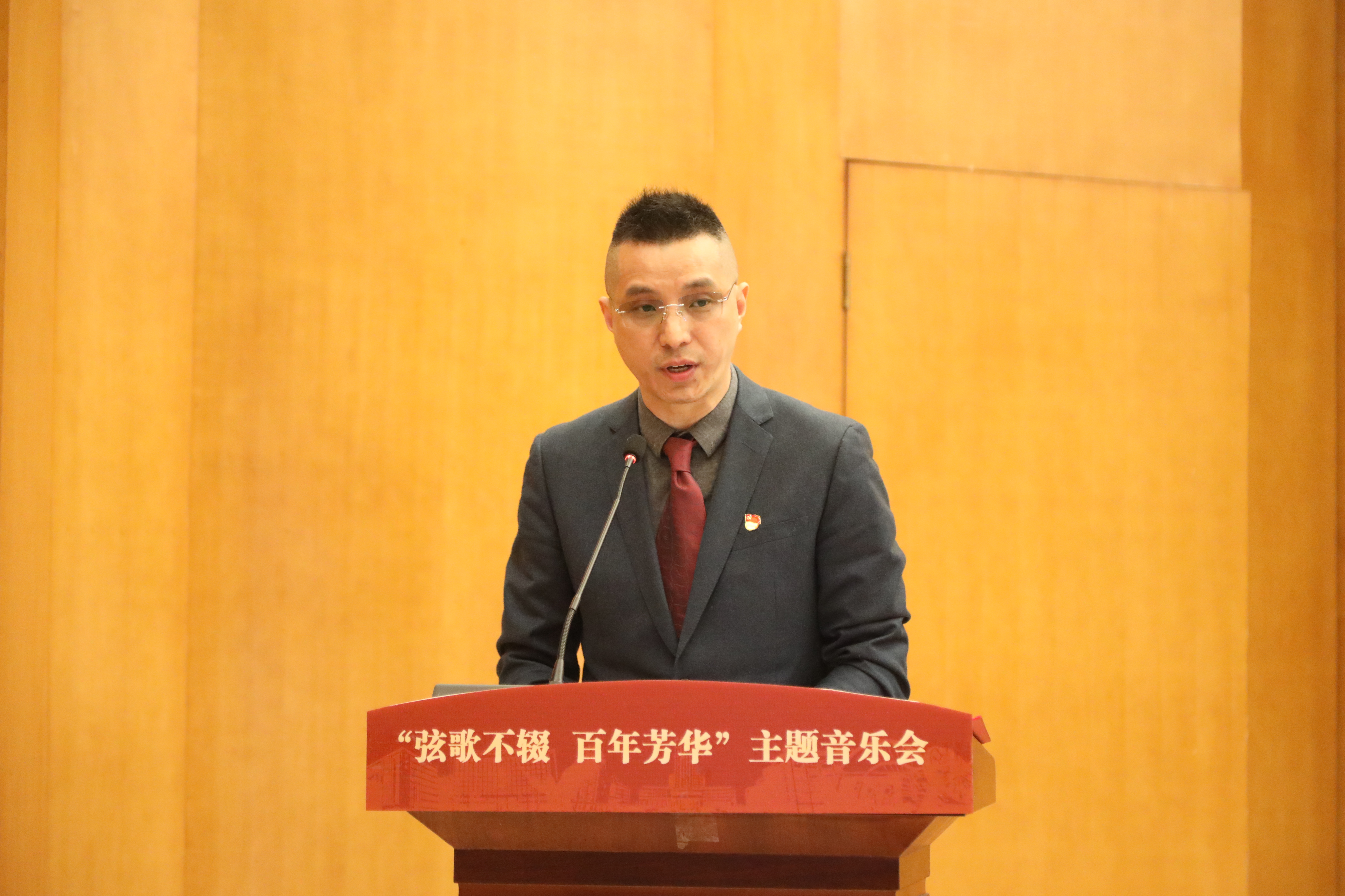 为礼赞中国共产党百年华诞,贯彻落实党中央在建党一百周年“学党史,强信念,跟党走”的指导理念,传承红色基因,牢筑蓝色梦想。6月18日晚19:00,由校党委宣传部、校党委研工部/研究生院主办,beat365中国官方网站、艺术学院联合承办的“弦歌不辍•百年芳华”党史主题音乐会在将军路校区东区音乐厅举办。beat365中国官方网站党委常委、副校长姜斌、校人事处处长、高级人才办主任崔海涛、校组织部副部长、统战部副部长胡苹、校研工部部长、研究生院副院长张启钱及beat365中国官方网站、艺术学院领导和一百余名师生参加音乐会。音乐会现场氛围热烈,座无虚席。