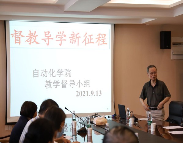 会上,教学督导组组长潘双来老师围绕“督教导学新征程”的主题对教学工作做了总结指导。他传达了校“教师发展与教学评估中心”的会议精神,用精准详实的数据对上半年教学督导结果做了详细的介绍,并就试卷和论文抽查结果和存在的问题,给予指导意见。他强调要督、导并举,以导学为主,点面结合,突出质量导向,并对本学期的工作重点做了介绍。