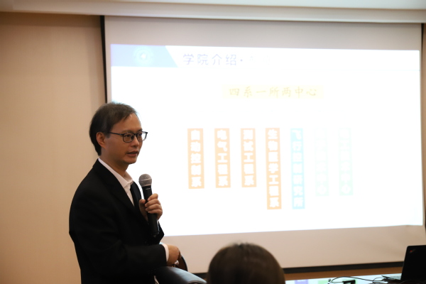 陈谋从学院师资力量、学科分布、科研方向等方面作学院情况介绍,阐述了学院各方面的优势及合作基础,表达了对双方加强合作、共同发展的殷殷期望。